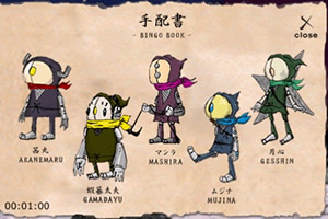 BINGO BOOK : 捜索対象の忍者を表示。捕まえると×印がつきます。